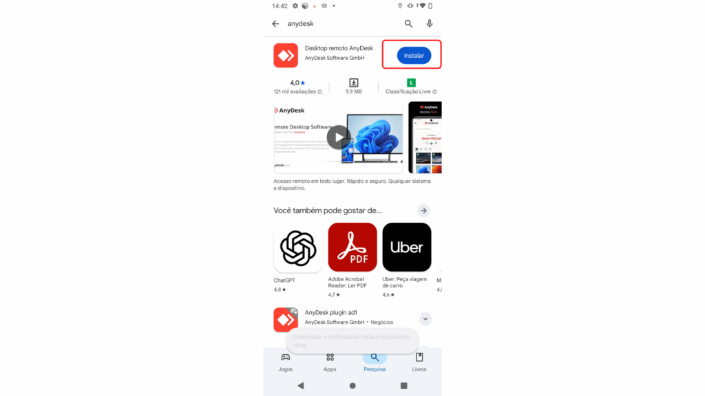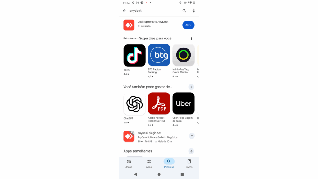 O ícone do AnyDesk aparecerá na tela inicial do celular.
