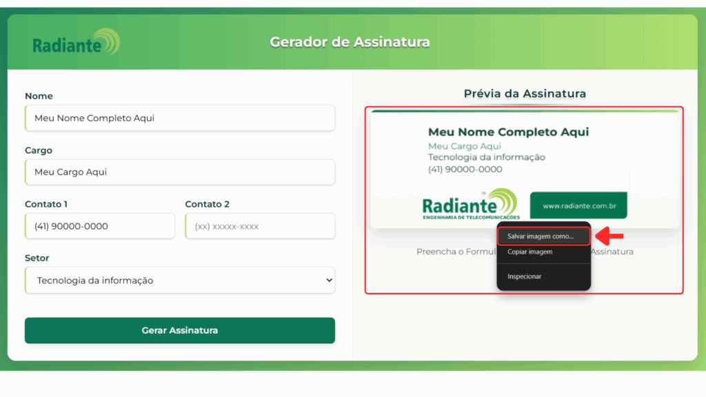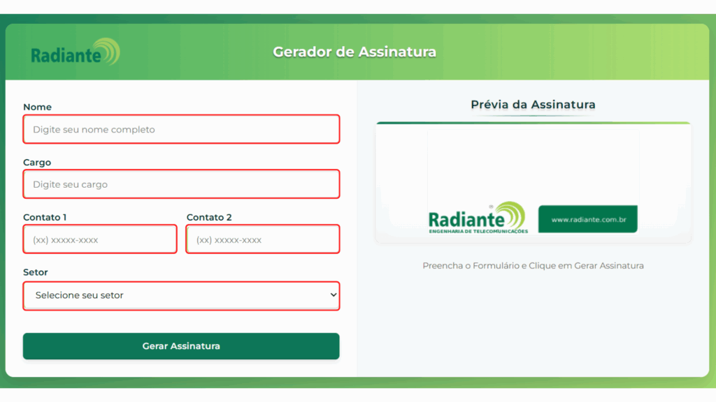 Este guia irá mostrar, passo a passo, como gerar sua assinatura personalizada e configurá-la no Thunderbird, utilizando o gerador oficial da Radiante.