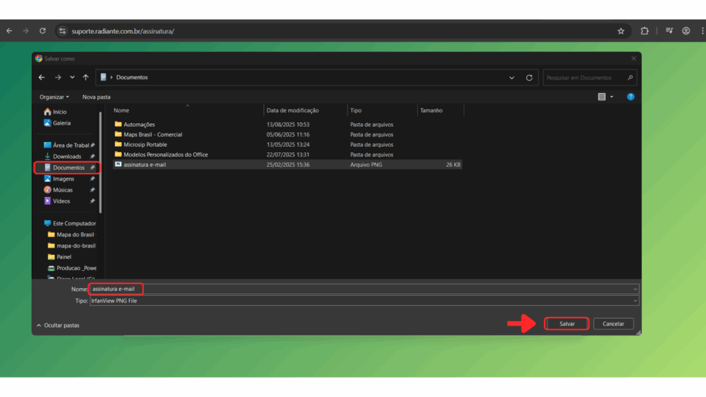 • Recomendamos salvar na pasta Documentos, com o nome:
